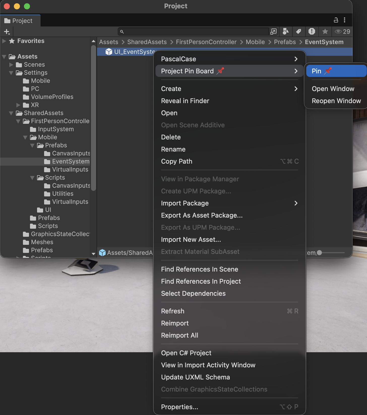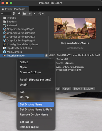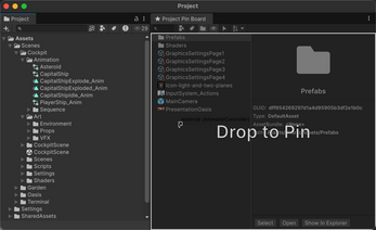 - Drag pinned assets directly into Hierarchy or Scene